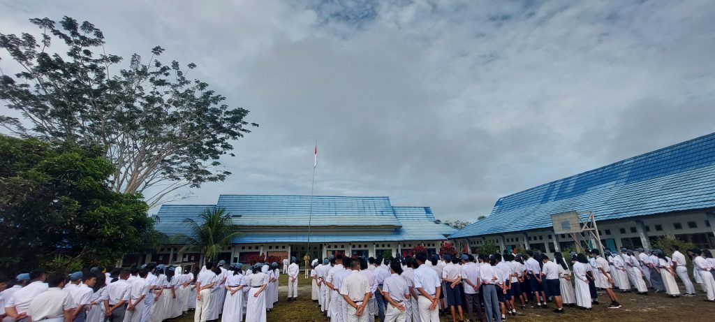 Kegiatan hari pertama : Upacara bendera sekaligus Perkenalan seluruh pegawai SMAN 1 Siluq Ngurai kepada seluruh siswa baru.